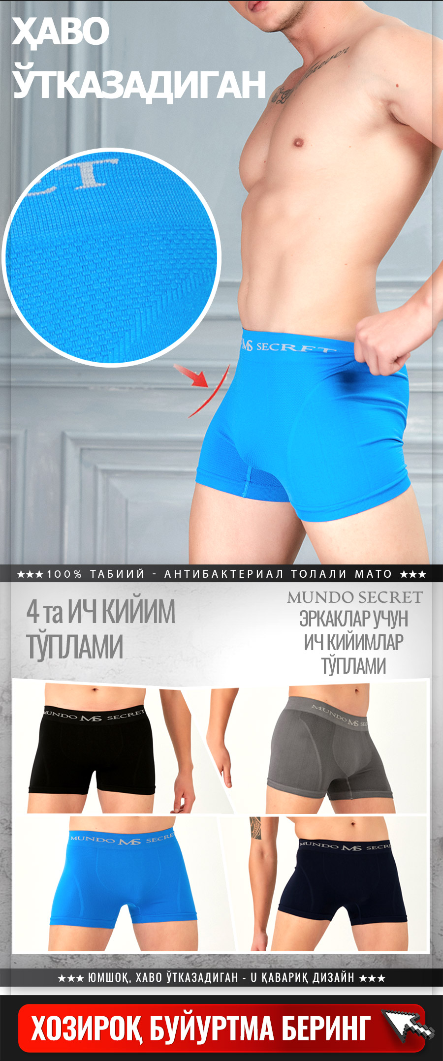 БУЮРТМА ШАКЛИMundo Secretнинг 4 хил рангли пайпоқ тўпламиИЛТИМОС, БУЮРТМА ҚИЛМОҚЧИ БЎЛГАН ТЎПЛАМИНГИЗНИ ТАНЛАНГ